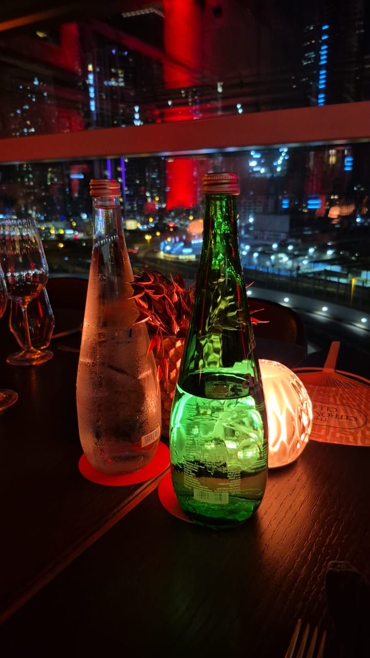 The place looks great, very stylish, with warm lighting, an open kitchen, and killer skyline views. Plus, a DJ that actually knows how to keep the vibe going. Heads up though, getting there is a tad confusing. You have to drive up a spiral ramp through the parking garage, and it feels like you’re going up to the 16th floor (not sure how many levels we actually climbed). Just follow the signs carefully, even when it feels like you should already be there.